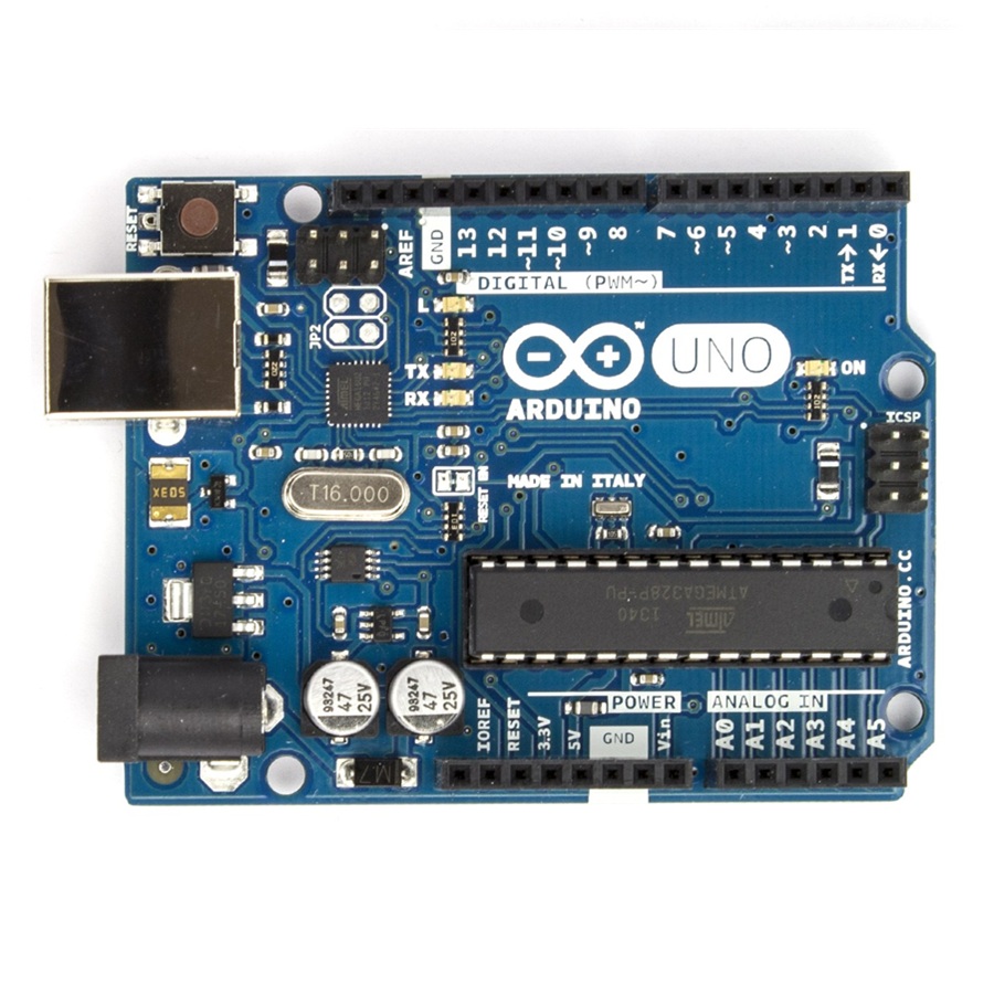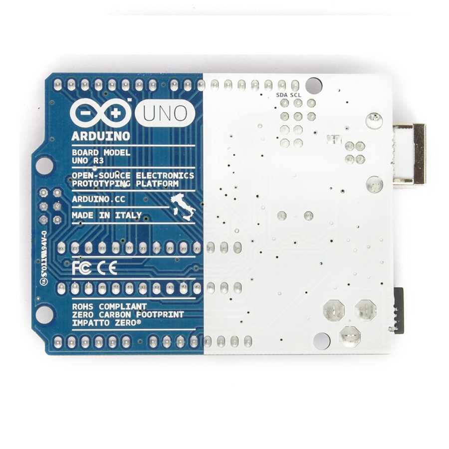 USB (ATmega16U2 USB-to-Serial converter), Power Jack, ICSP header.