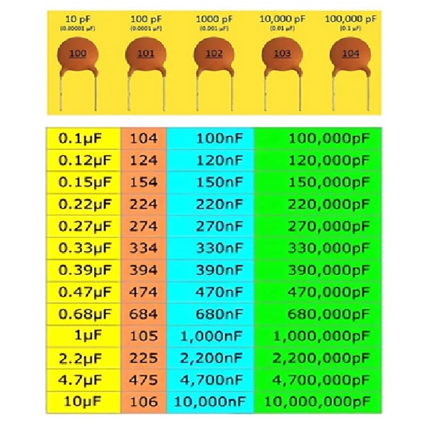 Capacitance Values 1pF to 10µF (Standard E-series values)